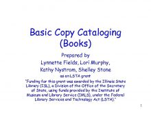 Basic Copy Cataloging Books Prepared by Lynnette Fields