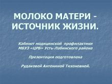МОЛОКО МАТЕРИ ИСТОЧНИК ЖИЗНИ Кабинет медицинской профилактики МБУЗ