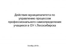 Действия муниципалитета по управлению процессом профессионального самоопределения учащихся