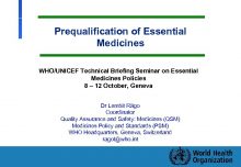 Prequalification of Essential Medicines WHO UNICEF Technical Briefing Seminar