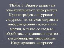 ТЕМА 6 Видове защита на класифицираната информация Криптографска