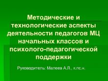 Методические и технологические аспекты деятельности педагогов МЦ начальных