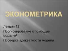 ЭКОНОМЕТРИКА Лекция 12 Прогнозирование с помощью моделей Проверка