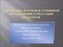 ПОРТФОЛИО ЕГО РОЛЬ В УСПЕШНОМ ПРОХОЖДЕНИИ АТТЕСТАЦИИ ПЕДАГОГОВ