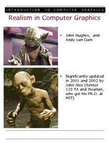 INTRODUCTION TO COMPUTER GRAPHIC S Realism in Computer