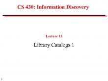 CS 430 Information Discovery Lecture 13 Library Catalogs
