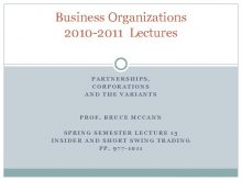 Business Organizations 2010 -2011 Lectures PARTNERSHIPS CORPORATIONS AND