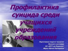 Профилактика суицида среди учащихся учреждений образования Подготовила педагог-психолог