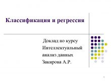 Классификация и регрессия Доклад по курсу Интеллектуальный анализ