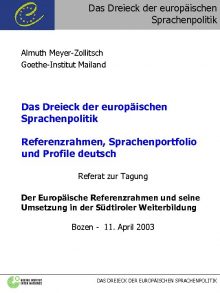 Das Dreieck der europäischen Sprachenpolitik Almuth Meyer-Zollitsch Goethe-Institut