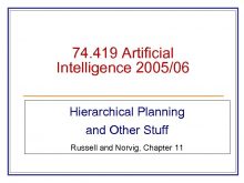 74 419 Artificial Intelligence 2005 06 Hierarchical Planning and