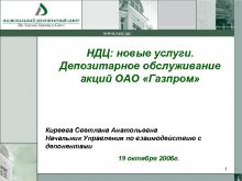 НДЦ новые услуги Депозитарное обслуживание акций ОАО Газпром