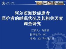 阿尔茨海默症患者 照护者的睡眠状况及其相关因素 调查研究 汇报人 马想丽 指导老师 XXX 时间 2017年 4月21日