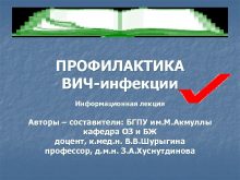 ПРОФИЛАКТИКА ВИЧ-инфекции Информационная лекция Авторы составители БГПУ