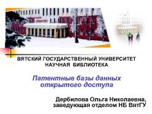 ВЯТСКИЙ ГОСУДАРСТВЕННЫЙ УНИВЕРСИТЕТ НАУЧНАЯ БИБЛИОТЕКА Патентные базы данных
