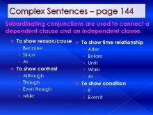 Complex Sentences page 144 Subordinating conjunctions are