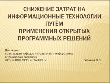 СНИЖЕНИЕ ЗАТРАТ НА ИНФОРМАЦИОННЫЕ ТЕХНОЛОГИИ ПУТЁМ ПРИМЕНЕНИЯ ОТКРЫТЫХ