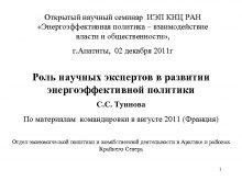 Открытый научный семинар ИЭП КНЦ РАН Энергоэффективная политика