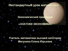 Нестандартный урок математики Экономический практикум ЗНАТОКИ ЭКОНОМИКИ Учитель