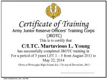 Certificate of Training Army Junior Reserve Officers Training