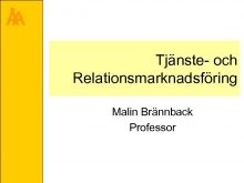 Å A Tjänste- och Relationsmarknadsföring Malin Brännback Professor