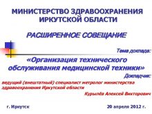 МИНИСТЕРСТВО ЗДРАВООХРАНЕНИЯ ИРКУТСКОЙ ОБЛАСТИ РАСШИРЕННОЕ СОВЕЩАНИЕ Тема доклада