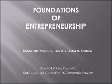 FOUNDATIONS OF ENTREPRENEURSHIP CLASS ONE INTRODUCTION TO CLASS