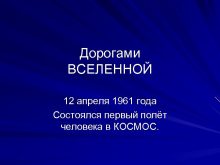 Дорогами ВСЕЛЕННОЙ 12 апреля 1961 года Состоялся первый