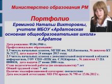 Министерство образования РМ Портфолио Ереминой Натальи Викторовны учителя