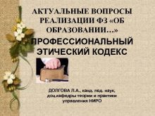 АКТУАЛЬНЫЕ ВОПРОСЫ РЕАЛИЗАЦИИ ФЗ ОБ ОБРАЗОВАНИИ ПРОФЕССИОНАЛЬНЫЙ ЭТИЧЕСКИЙ