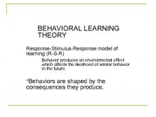 BEHAVIORAL LEARNING THEORY Response-Stimulus-Response model of learning R-S-R