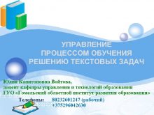 LOGO УПРАВЛЕНИЕ ПРОЦЕССОМ ОБУЧЕНИЯ РЕШЕНИЮ ТЕКСТОВЫХ ЗАДАЧ Юлия