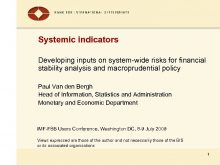 Systemic indicators Developing inputs on system-wide risks for