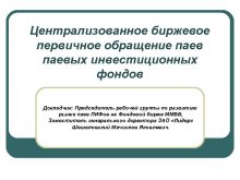 Централизованное биржевое первичное обращение паевых инвестиционных фондов Докладчик