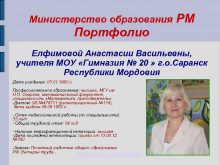 Министерство образования Портфолио РМ Елфимовой Анастасии Васильевны учителя
