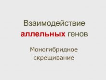 Взаимодействие аллельных генов Моногибридное скрещивание Аллельные гены