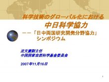 科学技術のグローバル化における 中日科学協力 日中両国研究開発分野協力 シンポジウム 沈文慶副主任 中国国家自然科学基金委員会 2007年 11月16日