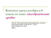 Конспект урока алгебры в 8 классе по теме