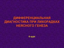 ДИФФЕРЕНЦИАЛЬНАЯ ДИАГНОСТИКА ПРИ ЛИХОРАДКАХ НЕЯСНОГО ГЕНЕЗА 6 курс