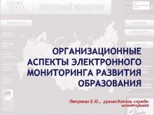 ОРГАНИЗАЦИОННЫЕ АСПЕКТЫ ЭЛЕКТРОННОГО МОНИТОРИНГА РАЗВИТИЯ ОБРАЗОВАНИЯ Петряева Е
