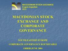 MACEDONIAN STOCK EXCHANGE Evgeni Zografski CEO MACEDONIAN STOCK