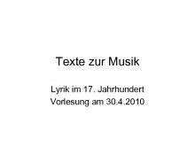 Texte zur Musik Lyrik im 17 Jahrhundert Vorlesung