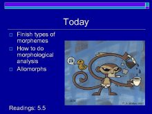 Today o o o Finish types of morphemes