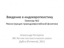 Введение в индоевропеистику Семинар 2 Реконструкция праиндоевропейской