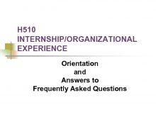 H 510 INTERNSHIP ORGANIZATIONAL EXPERIENCE Orientation and Answers to