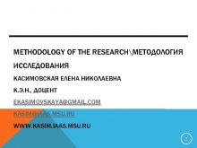 METHODOLOGY OF THE RESEARCH МЕТОДОЛОГИЯ ИССЛЕДОВАНИЯ КАСИМОВСКАЯ ЕЛЕНА НИКОЛАЕВНА