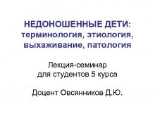 НЕДОНОШЕННЫЕ ДЕТИ терминология этиология выхаживание патология Лекция семинар