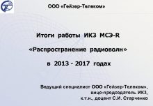 ООО Гейзер-Телеком Итоги работы ИК 3 МСЭ-R Распространение