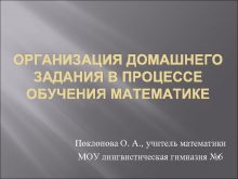 ОРГАНИЗАЦИЯ ДОМАШНЕГО ЗАДАНИЯ В ПРОЦЕССЕ ОБУЧЕНИЯ МАТЕМАТИКЕ Поклонова