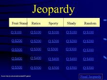 Jeopardy Fruit Stand Ratios Sporty Shady Random Q